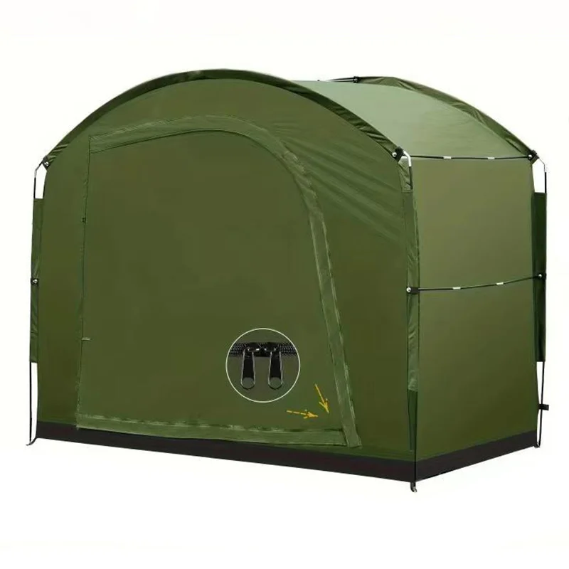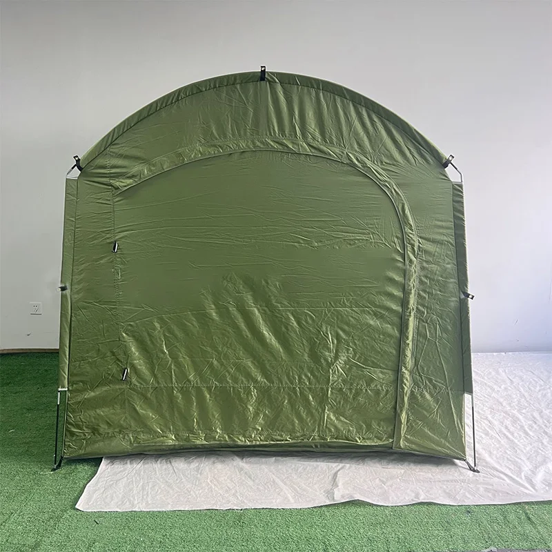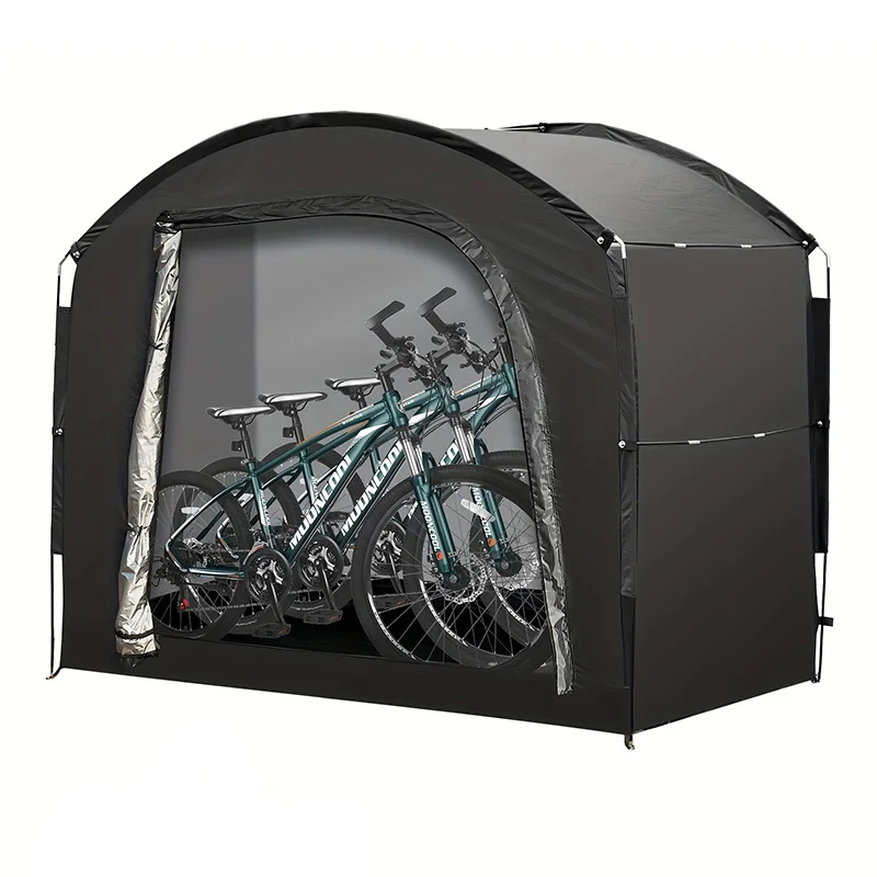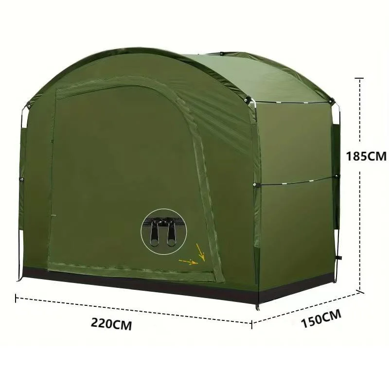 This large outdoor storage tent is designed to protect bikes, tools, and outdoor equipment from weather and dust. Its spacious interior provides ample room for multiple items, keeping your gear organized and safe. The foldable, portable design allows for easy setup, relocation, and storage when not in use. Made from durable, weather-resistant materials, it shields your equipment from rain, sunlight, and wind. Reinforced seams and a sturdy frame ensure long-lasting durability and stability in outdoor conditions. Perfect for camping, backyard storage, or protecting bicycles and gardening tools, it adapts to multiple outdoor needs. The wide opening allows easy access to stored items, while the compact foldable design saves space when not in use. Lightweight yet strong, it is easy to transport and ideal for temporary or permanent storage solutions. The tent provides reliable shelter for all your outdoor equipment, keeping it dry and secure. Ideal for seasonal storage, construction tools, camping gear, or sporting equipment. The portable canopy style makes setup quick and convenient, even for a single person. It offers a cost-effective and practical solution for outdoor storage needs. Whether used at home, campsite, or outdoor worksite, this storage tent ensures your equipment stays protected. Durable and versatile, it is a must-have for anyone needing reliable outdoor storage space.